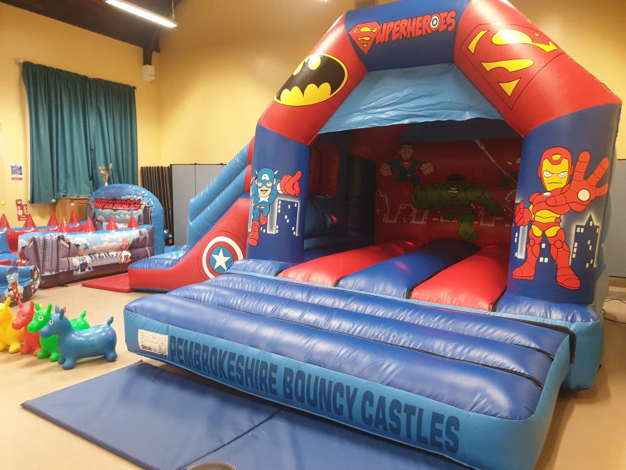 Super Hero Disco Bouncy Castle Combo Slide Available For Hire In Pembrokeshire... Haverfordwest, Tenby, Pembroke, Milford Haven, Fishguard & more...