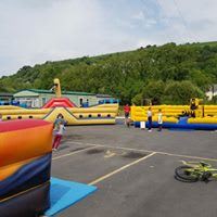 The inflatable features bish and bash pillows at the start of the fun run and then an up and over slide.