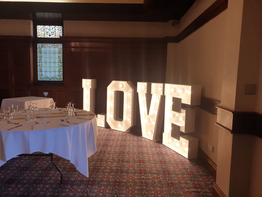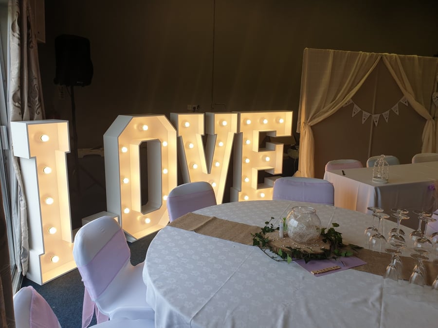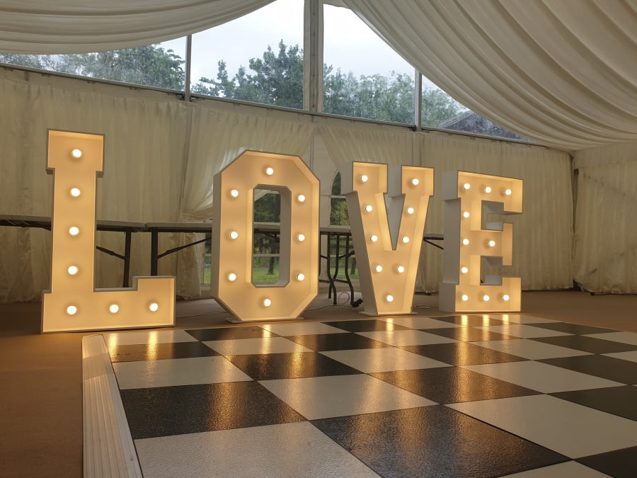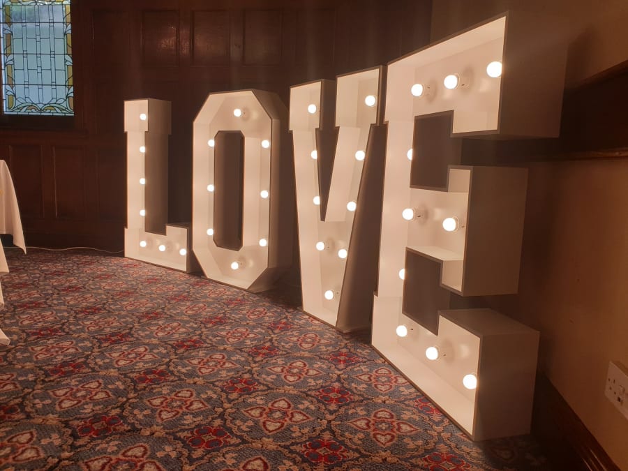 Brightening up any occasion, our giant light up letters povide a beautiful backdrop for photographs and create a very delightful ambience.