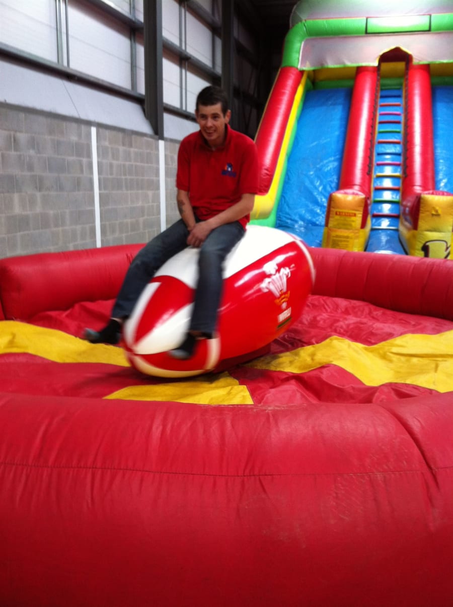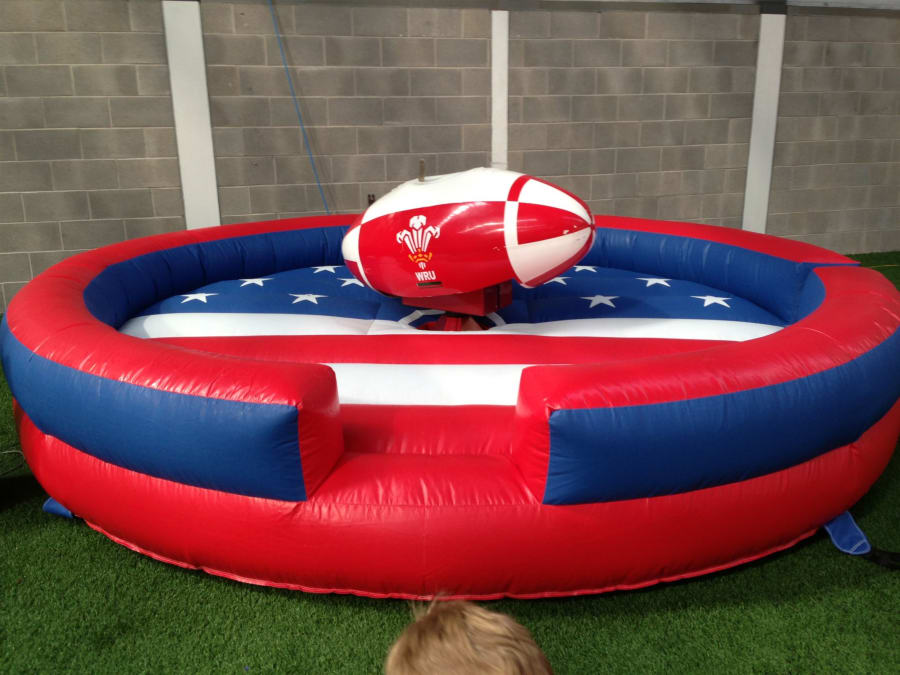 The Rugby Ball can be used inside or out. We can also supply an inflatable marquee in the event of wet or very hot weather. We offer a professional and friendly service from the time of booking to the time the last guest rides. We deliver, set-up and operate the bull for you during your event, leaving you to enjoy the activities with your guests, safe in our hands.