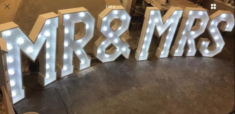 Giant Light Up Mr & Mrs Letters Available For Hire In Haverfordwest, Tenby, Milford Haven, Fishguard & more...