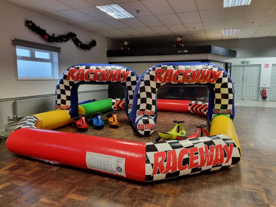Fancy something a little different? This racing cars package is becoming more and more popular. Our inflatable race trace is much safer and keeps users inside the track without crashing into people sitting on the sideline! Ouch!